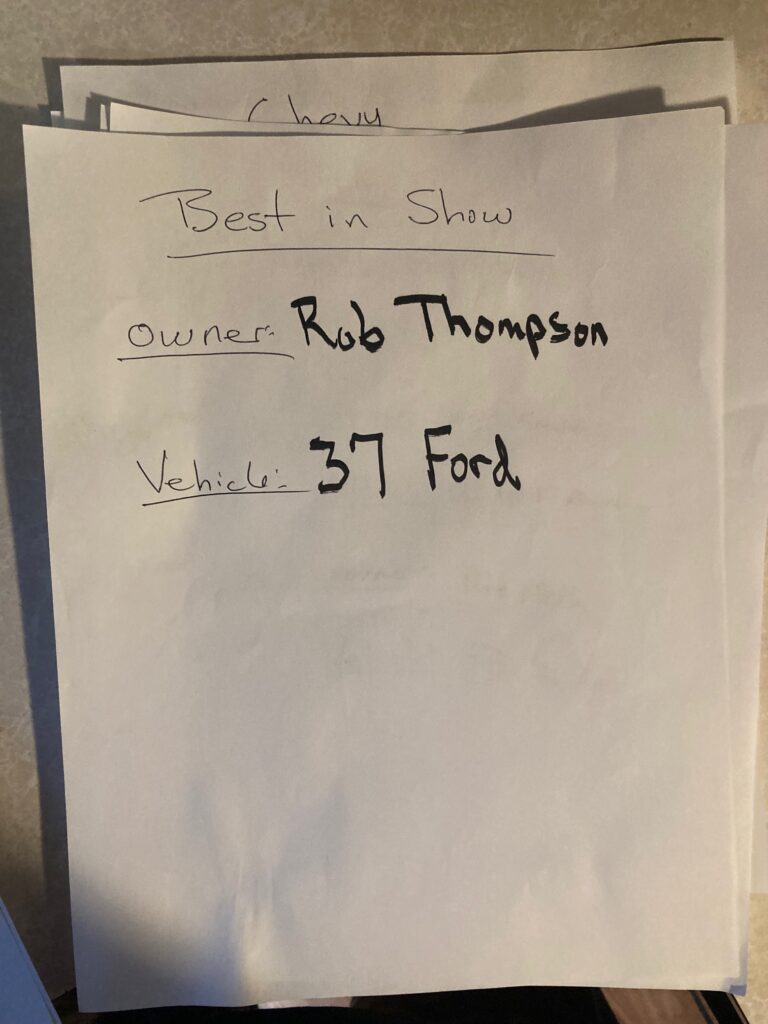 CONGRATS TO THIS YEAR’S BEST IN SHOW – ROB THOMPSON, TAKING TOP PRIZE WITH HIS 1937 FORD